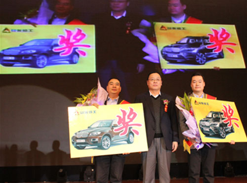 Yu Mengsheng and Wen Degang presented the tags of sales tasks and market shares of 2013 to dealers of loaders and excavators at the meeting and encouraged them to make more achievements in 2013.